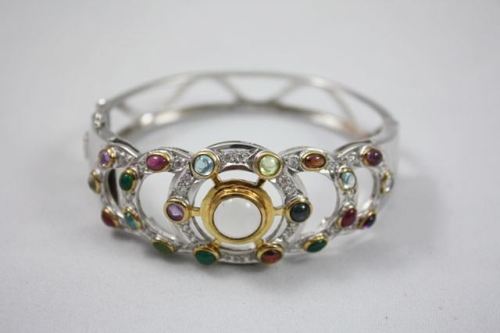 [THCommerce032] กำไลพลอยแท้ล้อม 2 ด้าน เงิน 92.5% ชุบ Yellow