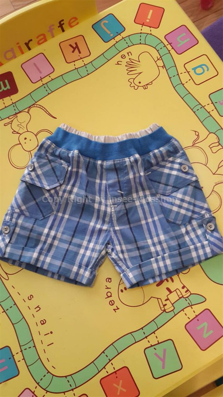 KP-2146PB กางเกงขาสั้นลายสก๊อตสีฟ้า เอว 2 ชั้น