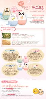 Missing U Hand Cream ครีมถนอมมือและเล็บผสมเชียร์บัตเตอร์ ในแพคเกจแพนด้าสีต่างๆ 1. โลมาสีชมพู กลิ่นดอกพีโอนี ดอกพีโอนีเป็นสัญญลักษณ์แห่งความงาม 2. แมวน้ำ กลิ่นชาเขียว ได้รับกลิ่นสดชื่นกระตุ้นความตื่นตัวด้วยชาเขียว แบบนี้ alert ได้ทั้งวัน 3. เพนกวินนางฟ้ากลิ่นแป้งเด็ก ให้ความรู้สึกกลับไปเป็นเด็กอีกครั้ง หอม ๆ เบาสบาย 4. หมีแพนด้า กลิ่นลูกพีช กลิ่นเฟรชชี่จากผลไม้หอมหวาน