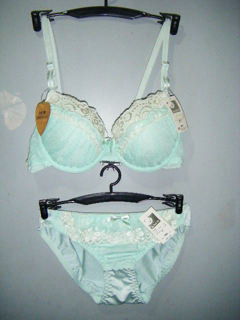 ชุดชั้นในเกาหลีสีเขียวอ่อน เนื้อผ้ามีเกร็ดวาว สวยหรูน่าใส่จังค่ะ