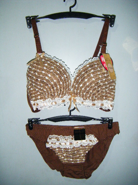 ชุดชั้นในเกาหลีสีน้ำตาล เย็บเป็นลายเส้นทั่วทั้งเต้า น่ารักสุด ๆ ค่ะ (ไซด์ B70)