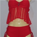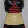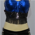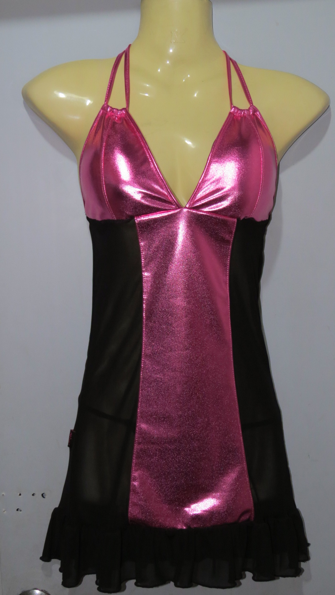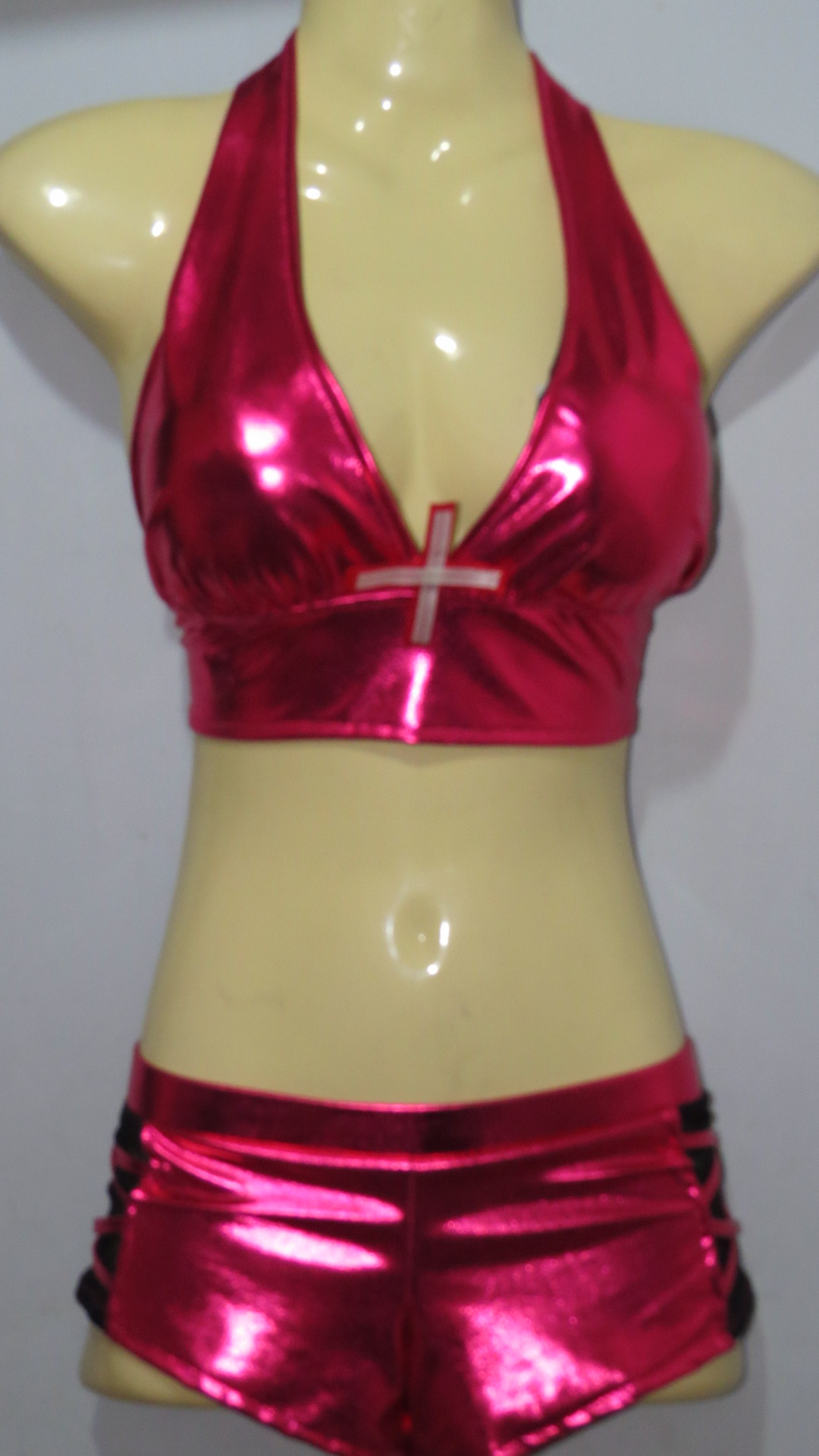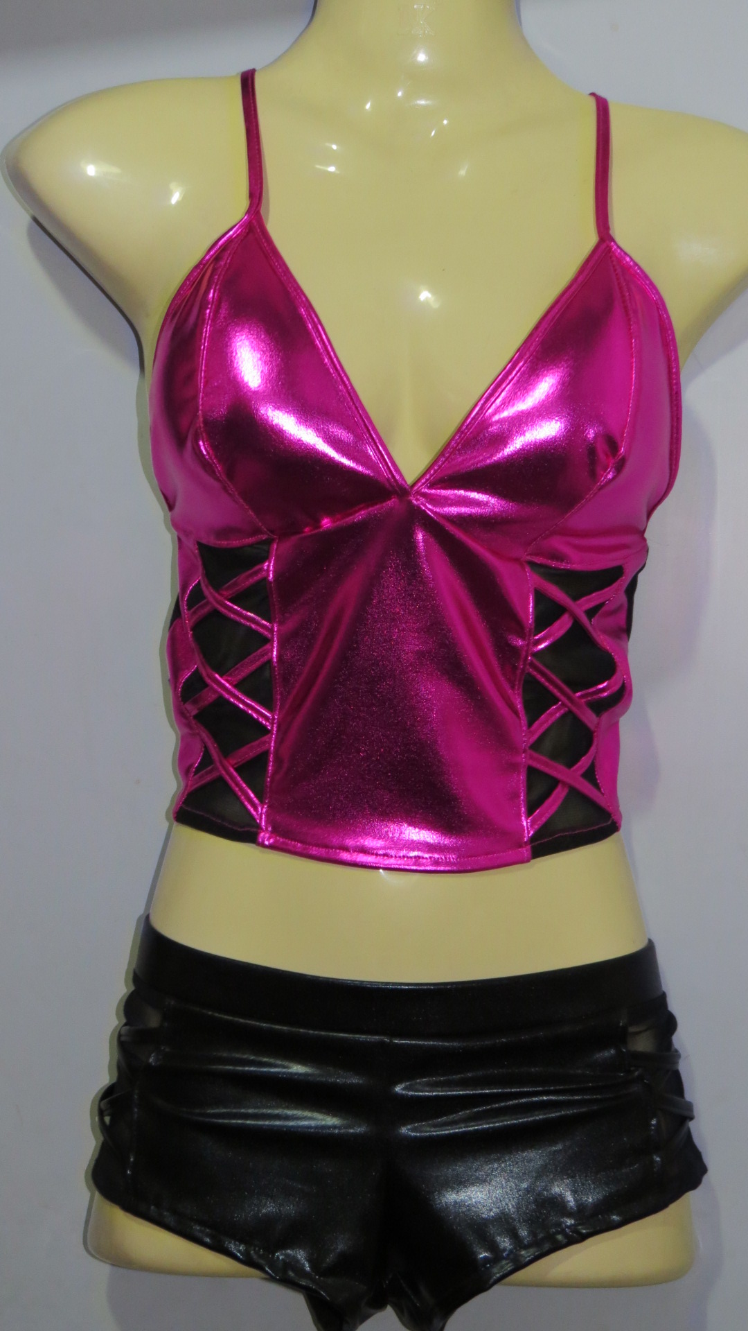 ชดโคโยตี้ ตัวเสื้อเป็นสายผูกคอ  และสายผูกด้านหลัง   ตกแต่งด้วยผ้ายีนส์สีน้ำเงินตัดกับหนังสีดำยืดหยุ่นได้มีโบว์ด้านหน้าเพิ่มความน่ารัก  คู่กางเกงหนังสีดำ ชุดนี้น่ารักมากค่ะ