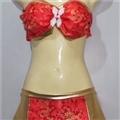ชุดโคโยตี้ลายทางสีส้มดำ  ตัวเสื้อเป็นผ้าสีส้มสลับกับหนังสีดำออกแบบเป็นเกาะอก  กางเกงผ้าสีส้มสลับกับหนังสีดำ  น่ารักจังค่ะ