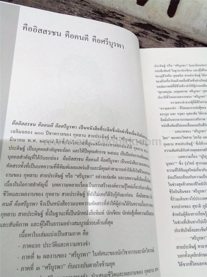 ชื่อสินค้า / บริการ : คืออิสสรชน คือคนดี คือศรีบูรพา 100 ปีชาตกาลกุหลาบ สายประดิษฐ์