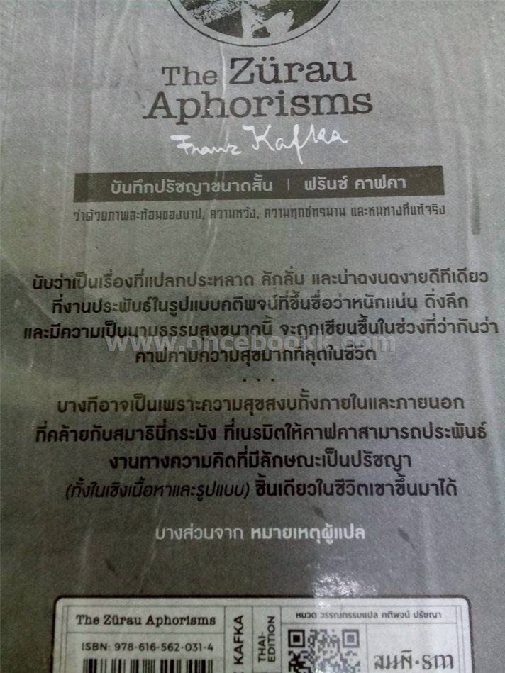 วรรณกรรมในวงเล็บเล่มล่าสุด ข้อเขียนทางปรัชญาและเป็นคติพจน์ชิ้นสำคัญ ที่ว่ากันว่าเป็นเพียงชิ้นเดียวในชีวิตของคาฟคา The Zürau Aphorisms คือหนังสือรวมข้อเขียนขนาดสั้นทั้งหมด 109 ชิ้น มีเนื้อหากว้าง ประกอบด้วยข้อคิดด้านปรัชญาและเทววิทยา มีหัวข้อเช่นเรื่องความชั่วร้าย ความจริง พระเจ้า บาปกำเนิด
