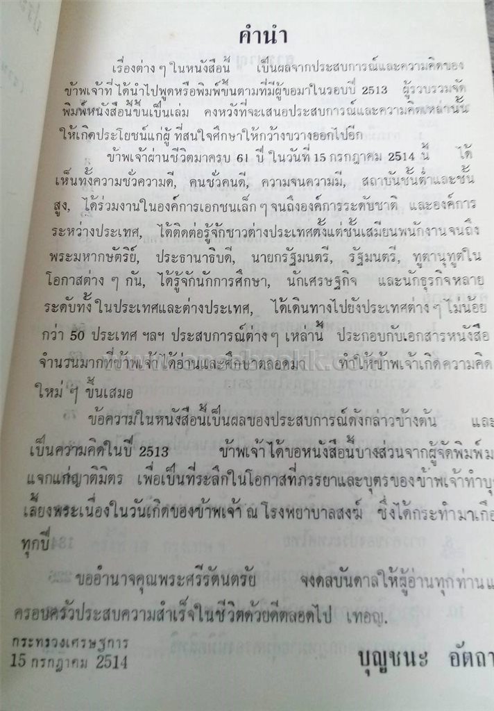 ชื่อสินค้า / บริการ : ประสบการณ์และความคิด บุญชนะ อัตถากร