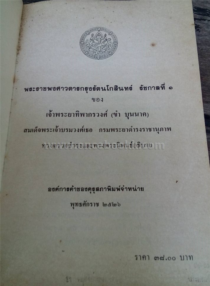 ชื่อสินค้า / บริการ : พระราชพงศาวดารรัตนโกสินทร์ รัชกาลที่ 1 เจ้าพระยาทิพากรวงศ์ (ขำ บุนนาค)