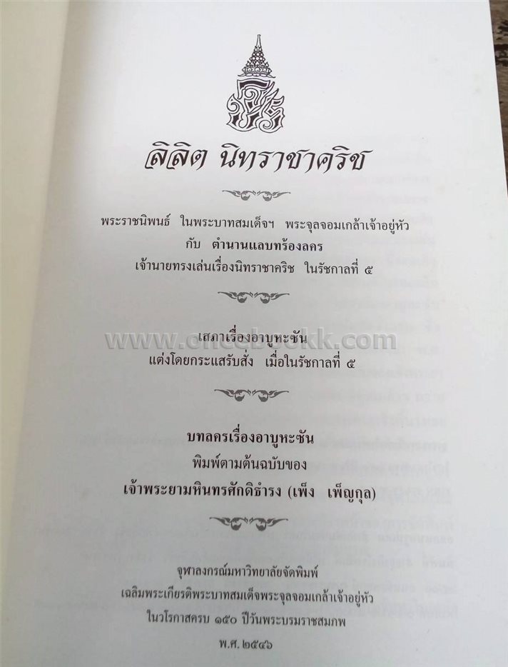 ชื่อสินค้า / บริการ : ลิลิตนิทราชาคริช เสภาเรื่องอาบูหะซัน บทลครเรื่องอาบูหะซัน