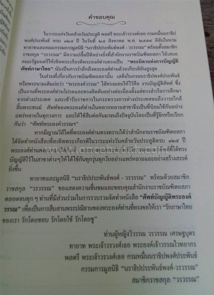 ศัพท์บัญญัติ พระองค์วรรณฯ (ครบรอบ 125 ปี) (มีลายเซ็นหม่อมราชวงศ์วิวรรณ เศรษฐบุตร (วรวรรณ))