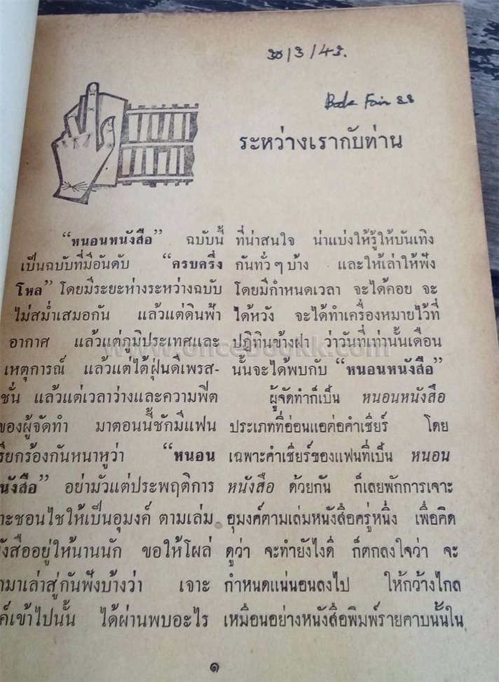 ราคาจำหน่าย 120 บาท    สภาพหนังสือ พอใช้-เก่าเก็บ กระดาษเหลือง มีรอยคราบ มีลายเซ็นเจ้าของเดิม
