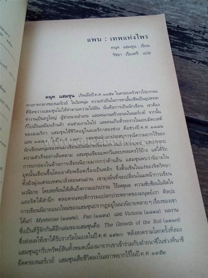 ชื่อสินค้า / บริการ : แพน เทพแห่งไพร (นักเขียนโนเบลปี 1920) คนุท แฮมซุน
