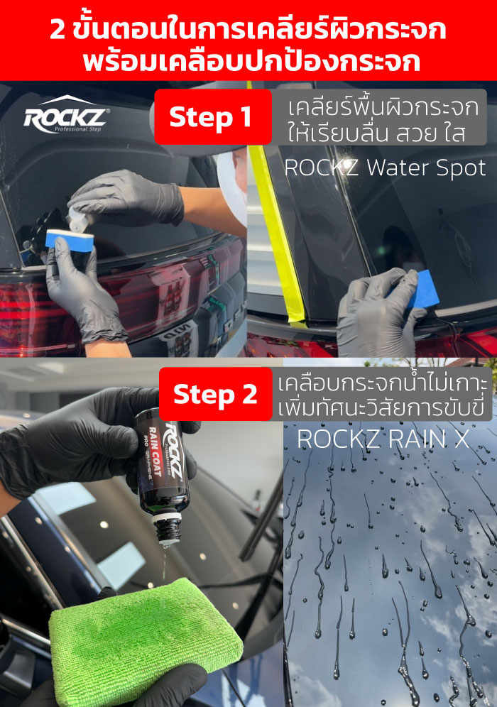 น้ำยาขัดคราบน้ำ ROCKZ WATER SPOT (2IN1) บนผิวรถยนต์และกระจกได้อย่างปลอดภัยและง่ายดาย