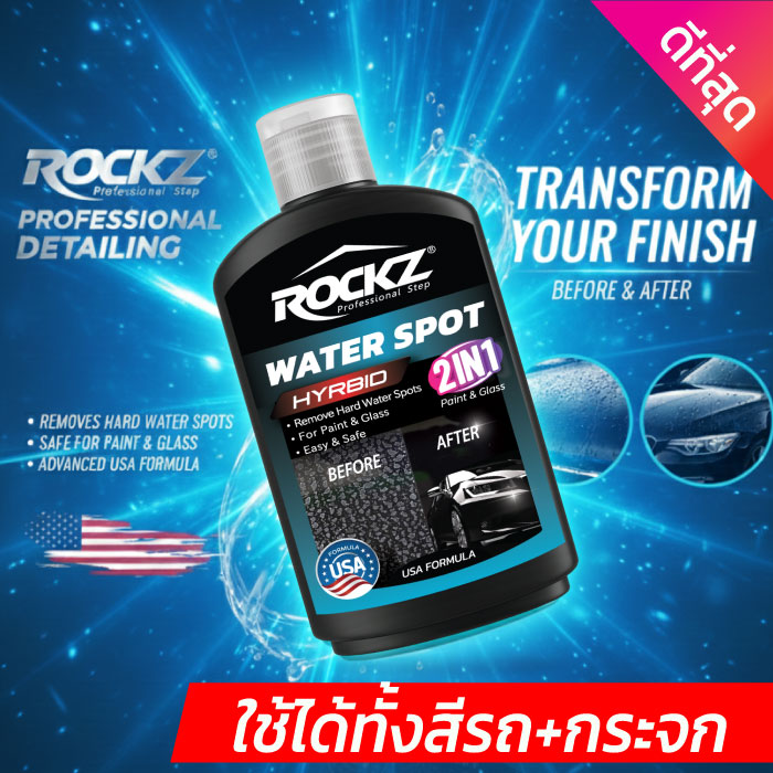 น้ำยาขัดคราบน้ำ ROCKZ WATER SPOT (2IN1) บนผิวรถยนต์และกระจกได้อย่างปลอดภัยและง่ายดาย