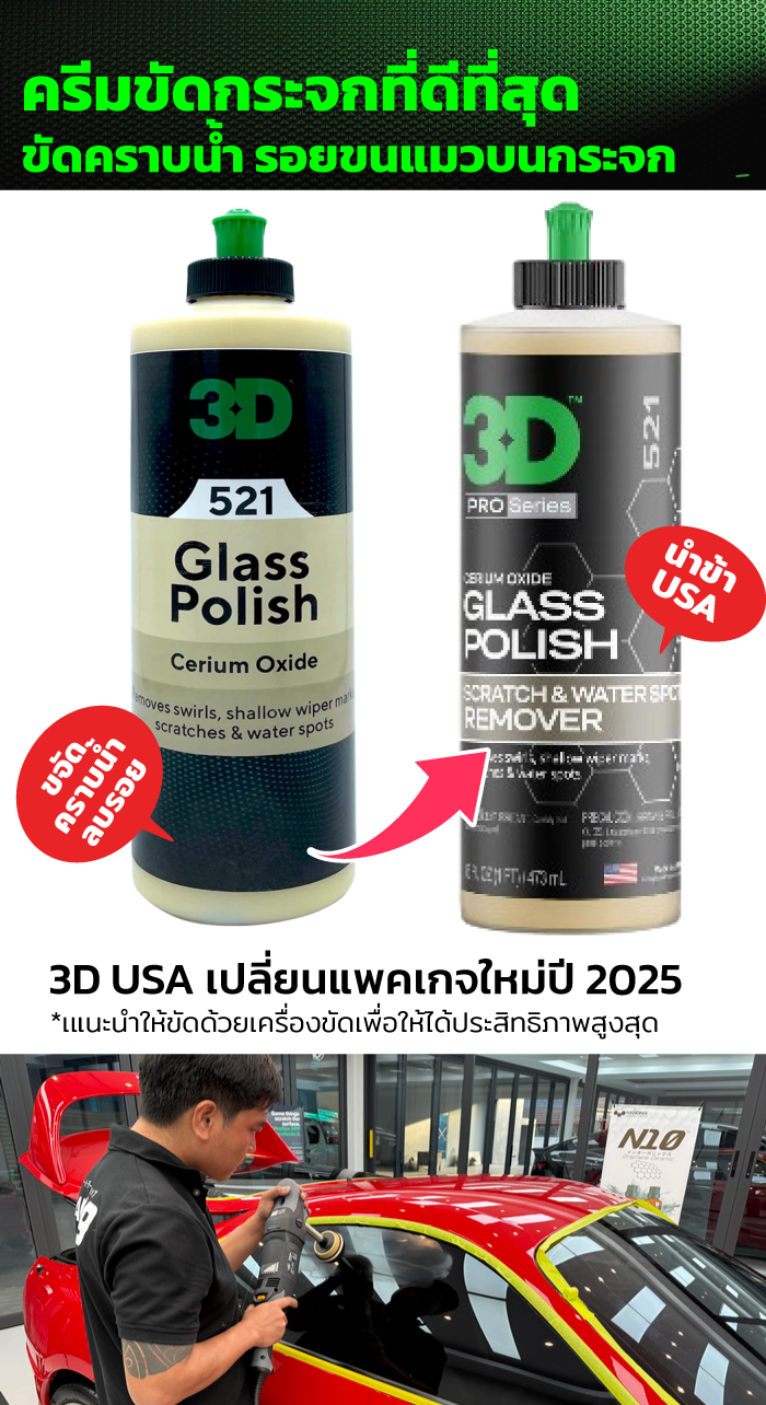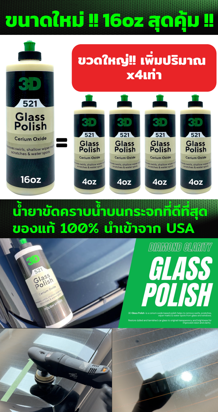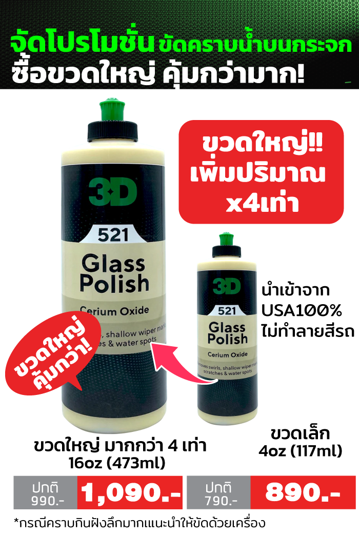 3D Glass Polish [Cerium Oxide] ใหม่!! น้ำยาขัดคราบน้ำฝังแน่น และรอยขัดข่วนบนกระจกรถ ใช้ง่าย ปลอดภัย นำเข้าจาก USA