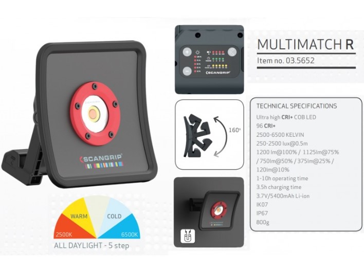 The MULTIMATCH R is a handy and powerful LED work light for inspection and detailing providing up to 1200 lumen.