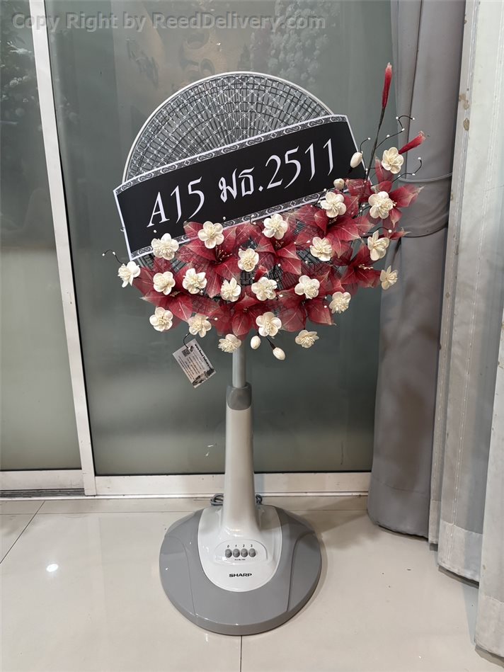 พวงหรีดพัดลมสไลด์ปุ่มกดระบบสัมผัส 16 นิ้ว ฮาตาริ (Hatari) ประดับด้วยดอกไม้ประดิษฐ์ มุมขวาล่าง