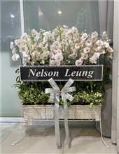 [ROX-13] พวงหรีดต้นกล้วยไม้ขาตั้งแบบรางยาว ดอกสีขาวอมชมพู