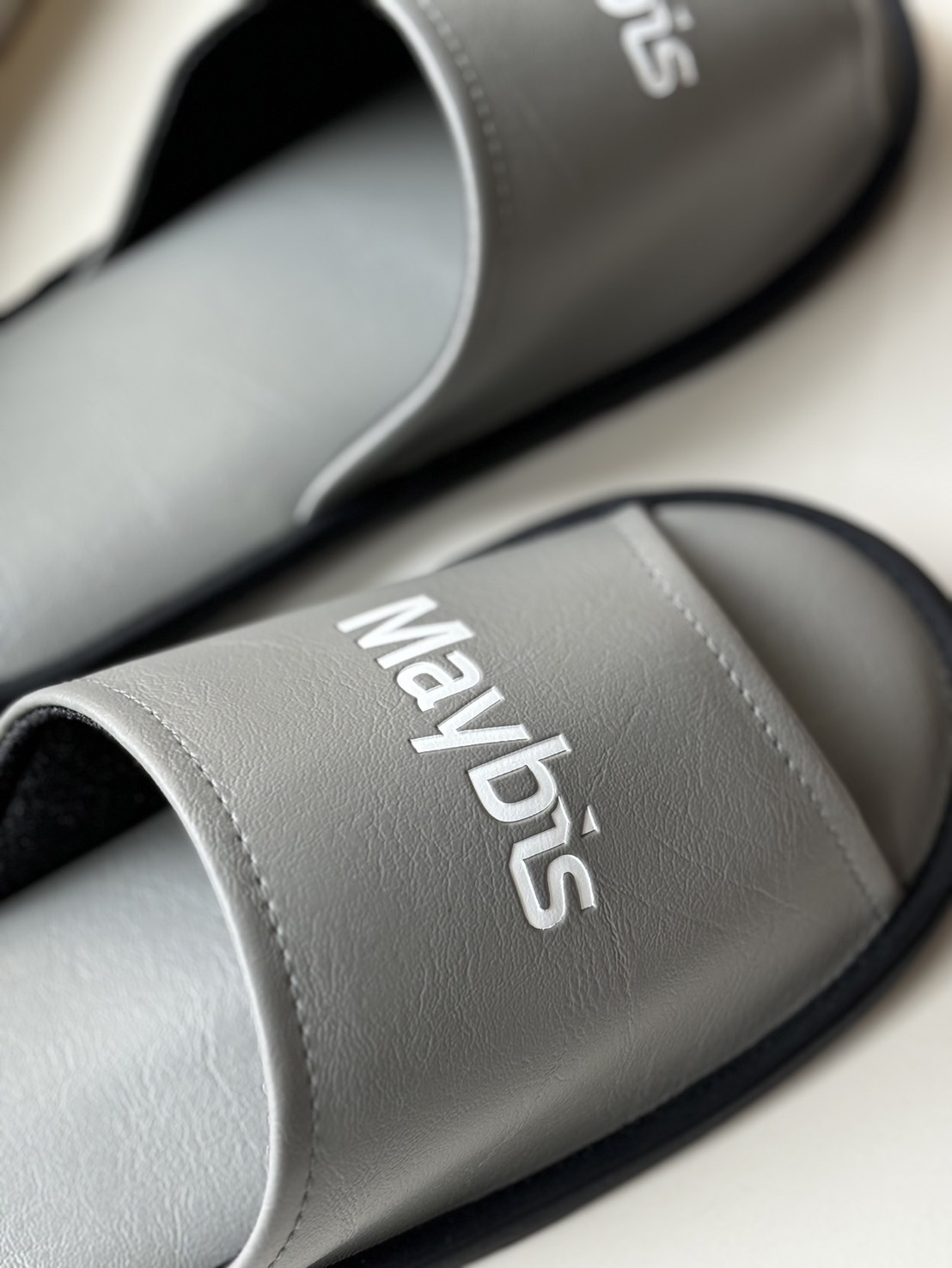 [CDS SLIPPERS] สลิปเปอร์หนังเทียม แบบหัวเปิด สีเทา PREMIUM