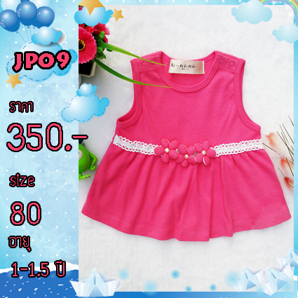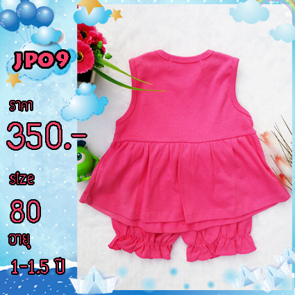 ชุดกางเกงเด็ก สีชมพูเข้ม เย็บลูกไม้ ติดดอกไม้ เกรดส่งออกญี่ปุ่น รหัส JP09