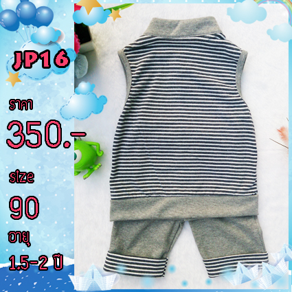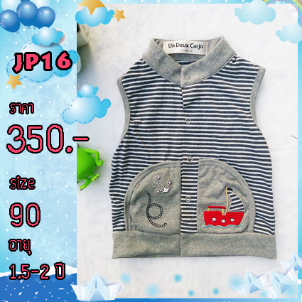 เสื้อผ้าเด็ก แขนกุด ลายขวาง ปักลาย เรือ เกรดส่งออกญี่ปุ่น รหัส JP16