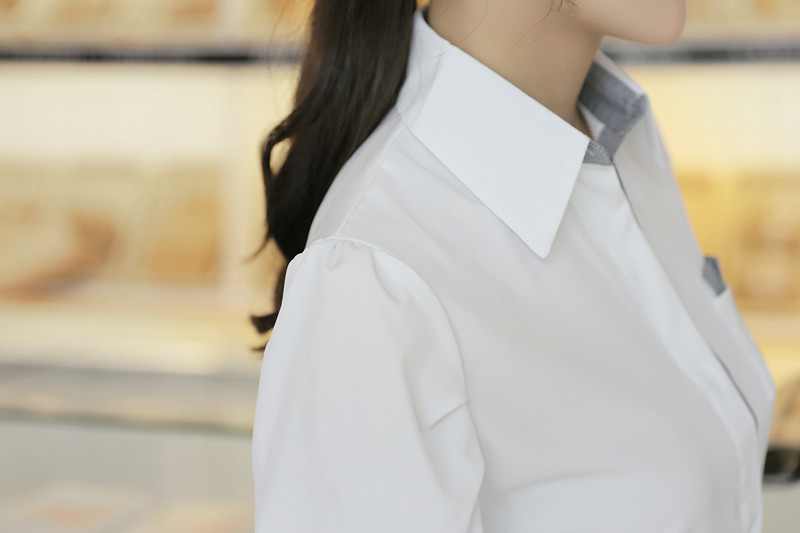 เสื้อเชิ๊ตทำงานผู้หญิงแขนยาวสีขาว สำหรับสาวๆออฟฟิต ดีไซด์ เรียบหรูดูดีมากๆ ตัวนี้เป็นงานนำเข้า มี 5 size S , M , L , XL ,XXL