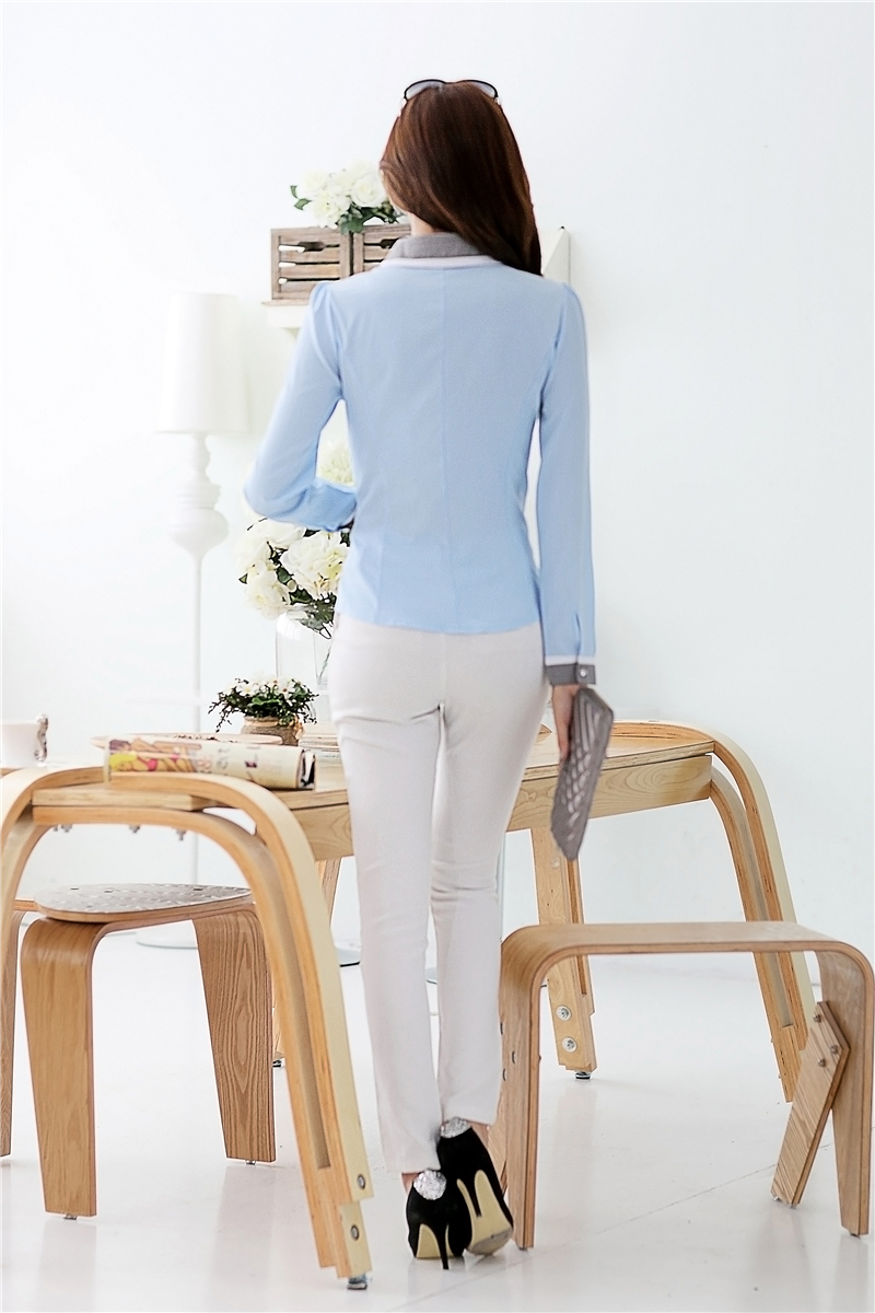 เสื้อเชิ๊ตทำงานผู้หญิงแขนยาวสีฟ้า สำหรับสาวๆออฟฟิต ดีไซด์ เรียบหรูดูดีมากๆ ตัวนี้เป็นงานนำเข้า  มี 5 size S , M , L , XL ,XXL