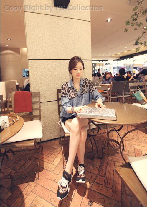 ชื่อสินค้า / บริการ : PF78092 เสื้อเชิ้ตผ้ายีนส์ แซมด้วยผ้าลายเสือ