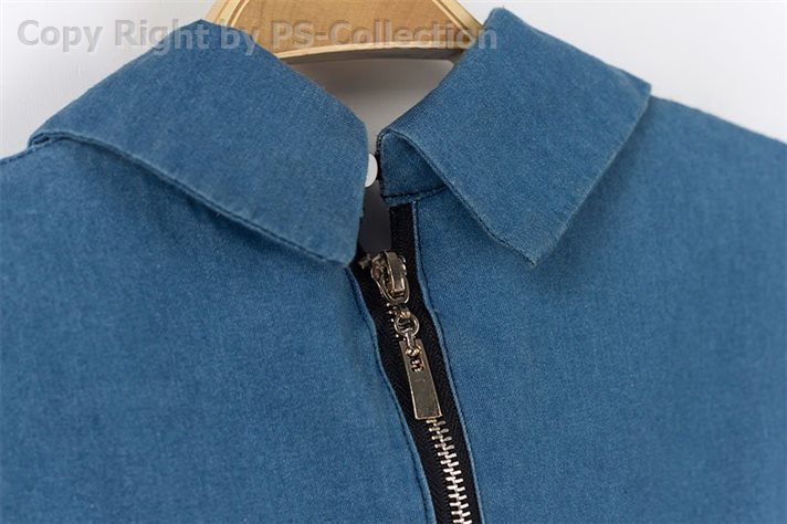 เดรสสั้นหรือเสื้อตัวยาว คอปก ซิปหลัง กระเป๋าหน้า แขนห้าส่วน ผ้ายีนส์ ใสกับเลกกิ้งก้อสวยค่ะ