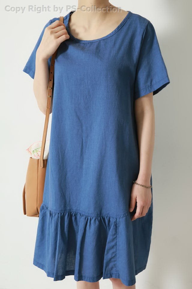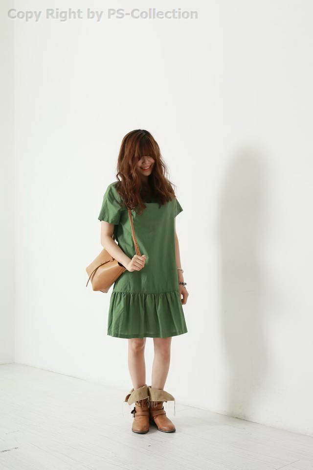 เดรสแฟชั่นสไตล์เกาหลี แขนสั้น ด้านหน้าจั๊มจับจีบ ผ้า cotton ใส่สบาย เหมาะสำหรับหน้าร้อนค่ะ