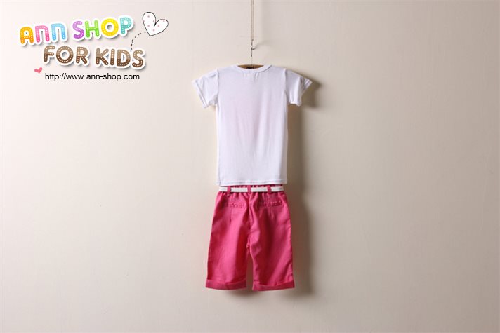 ชุดเสื้อ สกรีน Play + กางเกง + เข็มขัด สีชมพู