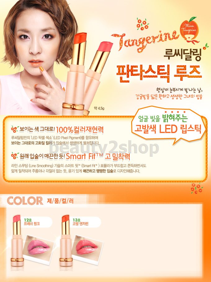ลิปสติก Miss tangerine collection ให้สีส้มสวยโดนใจ ช่วยให้ริมฝีปากดูโดดเด่นในทุกมุมมองเมื่อกระทบกับแสงด้วยเทคโนโลยี LED พร้อมทั้งถนอมริมฝีปากให้นุ่มชุ่มชื่นด้วยค่ะ