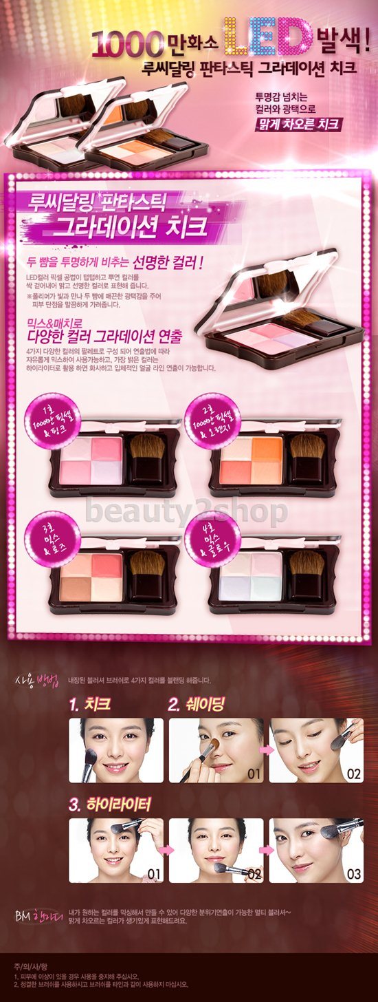 บรัช ออน คอลเลคชั่นใหม่ล่าสุด บรัชออน มหัศจรรย์ ไล่เฉดสีให้พวงแก้มเปล่งประกาย ดุจสาวเกาหลี เป็นได้ทั้งบรัชออนปัดแก้มสวย ให้สีสดใสเป็นธรรมชาติ หรือจะเป็นไฮไลน์ใบหน้าให้ สว่างสดใส เปล่งประกายลุควาว ๆ เหมือนสาวเกาหลีก็ได้จ้า เคล็ดลับเฉพาะคอลเล็คชั่นนี้คือ ช่วยเป็น LED ที่ช่วยเพิ่มความเปล่งประกาย สว่างสดใสให้ใบหน้า จึงทำให้ใบหน้าสว่าง โดนเด่นนนนได้อีก
