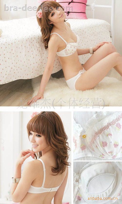 ชุดชั้นในพร้อมบิกินี่เข้าชุดสีขาวลายดอกไมั เนื้อผ้าดีใส่สบาย หวานน่ารักมากๆ ค่ะ (ฟองน้ำเสริม และสายบราถอดออกได้ค่ะ)