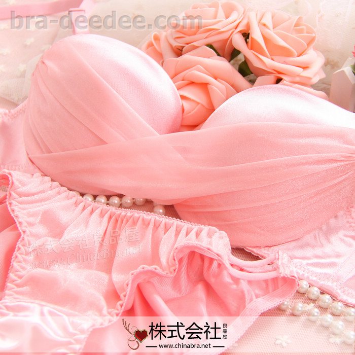ชุดชั้นในพร้อมบิกินี่เข้าชุดสีชมพูตกแต่งด้วยผ้าชีฟองป้ายหน้า หรูหราดูดีมากๆ (ฟองน้ำเสริม และสายบราสามารถถอดออกได้ค่ะ)