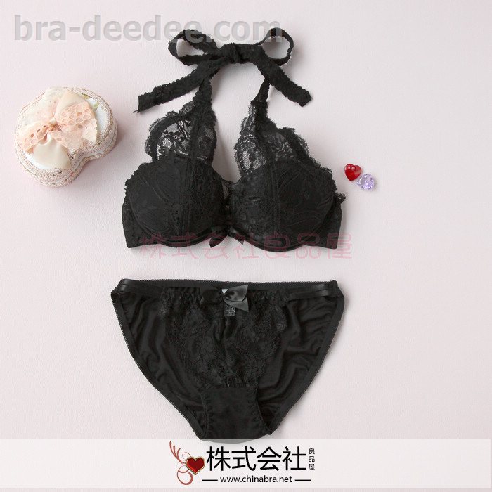ชุดชั้นในตะขอหน้าพร้อมบิกินี่เข้าชุดสีดำผูกคอลายลูกไม้ เซ็กซี่มากมาย(ฟองน้ำสามารถถอดออกได้ค่ะ)