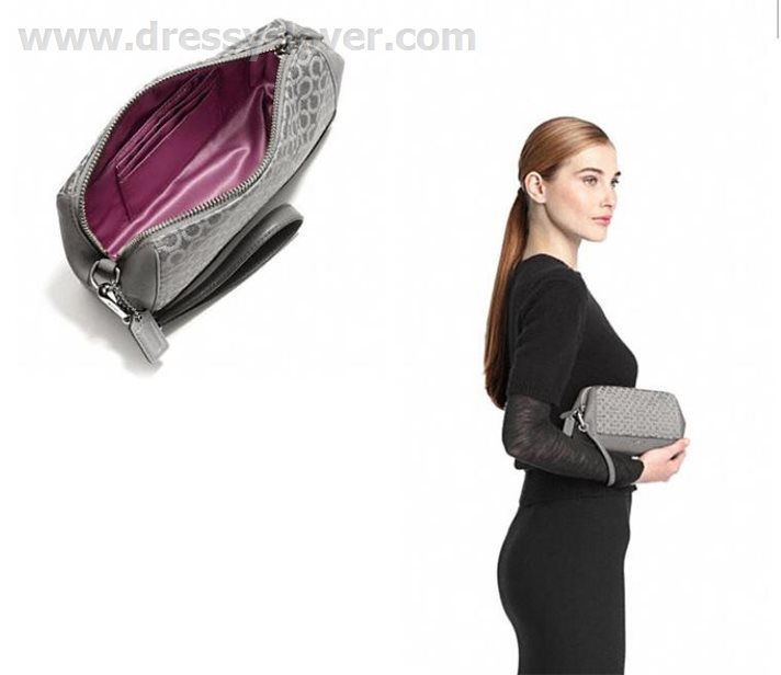 Zip-top closure, fabric liningDetachable wrist strapSignature