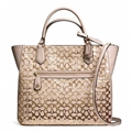SIGNATURE STRIPE EMBOSSED PATENT SATCHEL (COACH F25189)