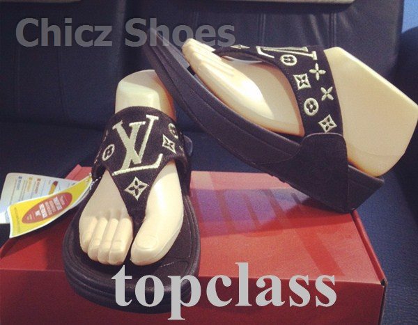 รองเท้า fitflop ลาย LV สีดำ ราคา 730 บาท