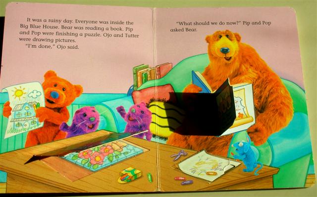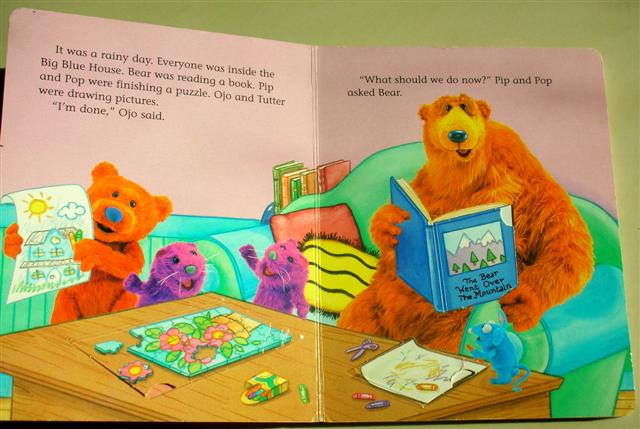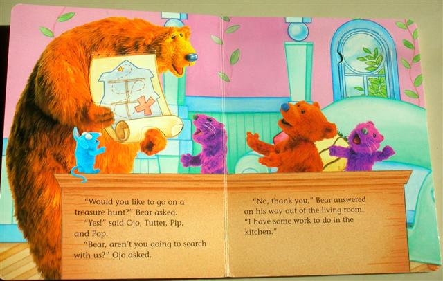หนังสือช่องเปิดภาพ broadbook จำนวน 12 หน้า ในวันฝนตกหมีตัวใหญ่และเพื่อนชวนกันเล่นเกมหาสมบัติในบ้าน น้องๆ อยากไปเล่นหาสมบัติกันไหมเอ่ย