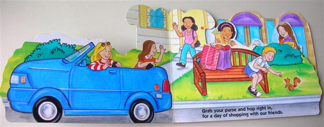 พวกเราขับรถไป shopping กันดีกว่า หนังสือมีรูปเล่มเป็นตัวการ์ตูนทำให้เด็กเกิดจินตนาการและดึงดูดความสนใจเด็กๆได้ดี