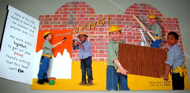 Broadbook with 9 pages.Step inside the busy world of the builder this action-packed novelty book.Featuring rough-to-touch wood, builder's beard and bandages! Lift the flaps to fing out the secrets of the builder's toolbox, construction site and builder's van