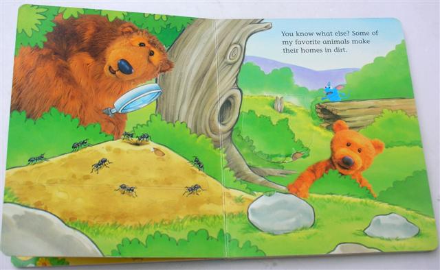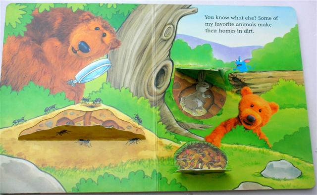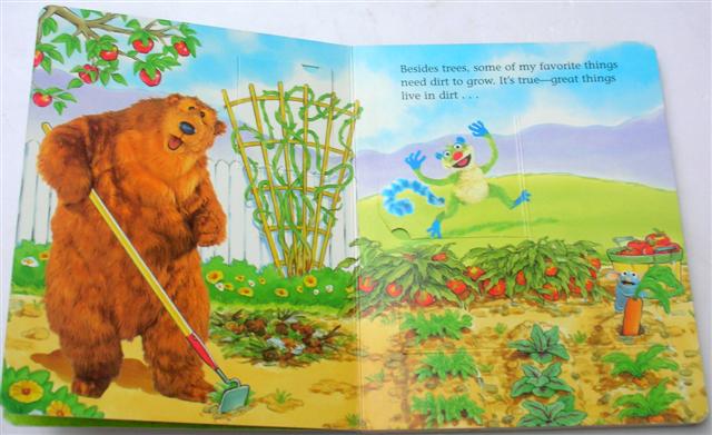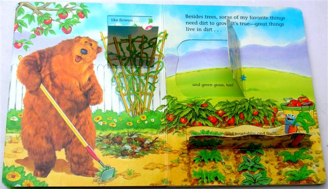 Lift-the-flap broadbook with 12 pages, Big bear with his friends gardening and all dirt.Guess what they met in the garden.