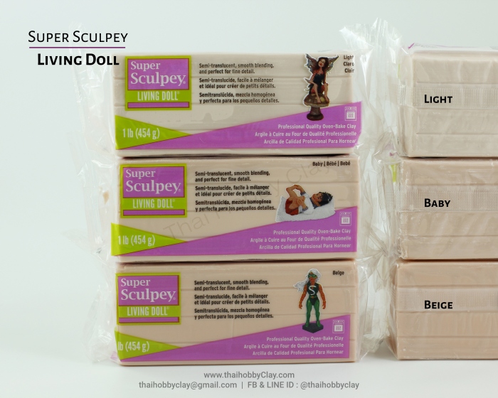 ดินซูเปอร์สคัลปี้ลิฟวิ่งดอลล์ (light Beige-สีเนื้อผิวขาว) เนื้อดินกึ่งโปร่งแสง ใช้ในการปั้นตุ๊กตาให้สีผิวสมจริง ปั้นโมเดล เนื้อดินเวลาแห้งจะแกร่งกว่า super sculpey เช่นการปั้นส่วนที่ยื่นออกมา อย่างเช่นนิ้วมือ