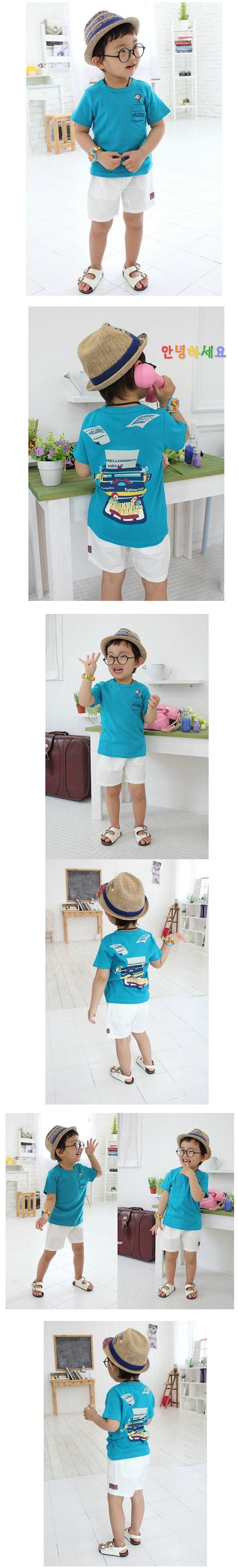 Z6001ชุดเซทเด็กเล็ก เสื้อแขนสั้นสีเหลืองสกรีนเป้ +กางเกง