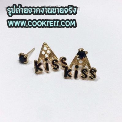 ชื่อสินค้า / บริการ : เครื่องประดับ เกาหลี, ต่างหู KISS สีดำ แนวเกาหลี