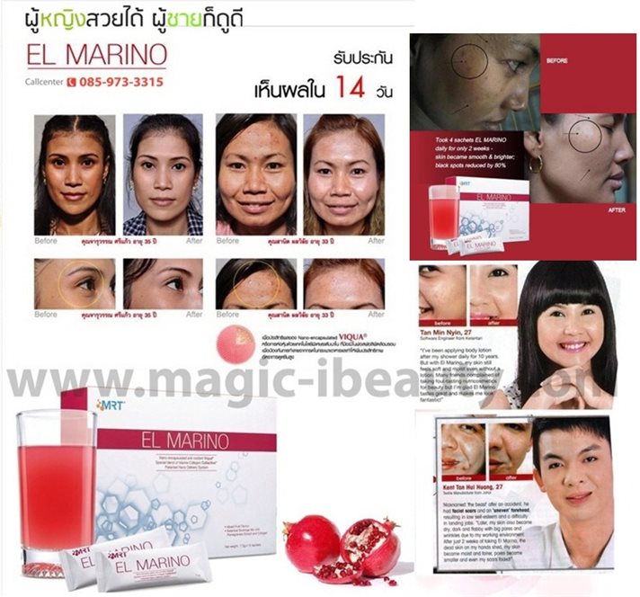 พิสูจน์และยืนยันแล้วว่า ผลิตภัณฑ์เอลมาริโน่ ELmarinoเป็นคำตอบเดียวที่สามารถช่วยคุณได้สำหรับผิวที่มีปัญหาริ้วรอย เหี่ยวย่น ฝ้า กระ จุดด่างดำรอยแผลเป็นจากสิวหลุมสิวที่ลึก สีผิวไม่สม่ำเสมอ ผิวแห้งเอลมารีโนสามารถช่วยให้ผิวของคุณกลับคืนมากระจ่างใส ไร้ริ้วรอยผิวเนียนเรียบสม่ำเสมอ ฝ้า กระ จุดด่างดำ รอยแผลเป็นจากสิวจางหายไปหลุมสิวที่ลึกดูตื้นขึ้นจนเนียนเรียบในที่สุดสีผิวกระจ่างใสอย่างมีสุขภาพดี ผิวแห้งกลับมาชุ่มชื้นจนคุณลืมไปเลยว่าเคยอายุเท่าไหร่ สวยจากภายในสู่ภายนอก ขาวผ่องประกายออร่าไปทั้งตัวภายใน 14 วัน โดยไม่ต้องบินไปฉีดรกแกะถึงประเทศเยอรมัน