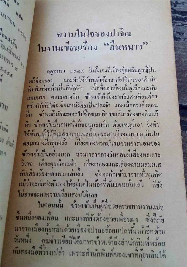 “ค่ำคืนฤดูหนาวคืนหนึ่ง ข้าพเจ้าลงมือเขียน “คืนหนาว” เขียนถึงเลือดที่ปนอยู่ในเสมหะของผู้ป่วยวัณโรค เขียนถึงความเป็นความตายของบัณฑิตตัวเล็กๆ คนหนึ่ง...”