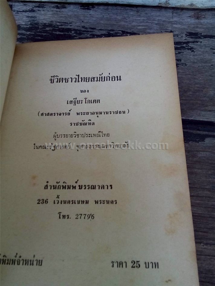 ชื่อสินค้า / บริการ : ชีวิตชาวไทยสมัยก่อน เสฐียรโกเศศ