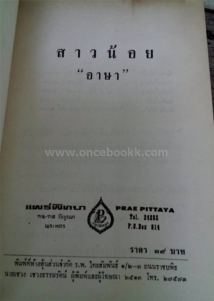 ราคาจำหน่าย 180 บาท   สภาพหนังสือ พอใช้-เก่าเก็บ กระดาษเหลือง ใบหุ้มสันปกด่างดำ มีรอยขาดเล็กน้อย
