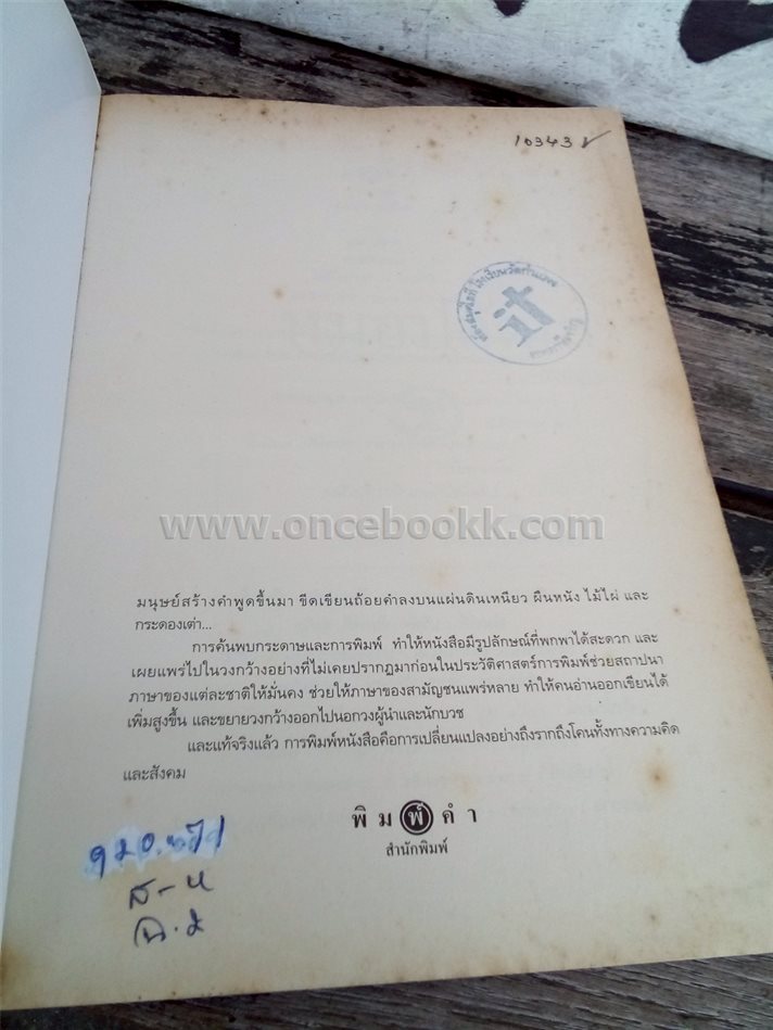 ราคาจำหน่าย 120 บาท สภาพหนังสือ พอใช้-เก่าเก็บ กระดาษเหลือง มีรอยคราบ คราบน้ำ ตราประทับห้องสมุด